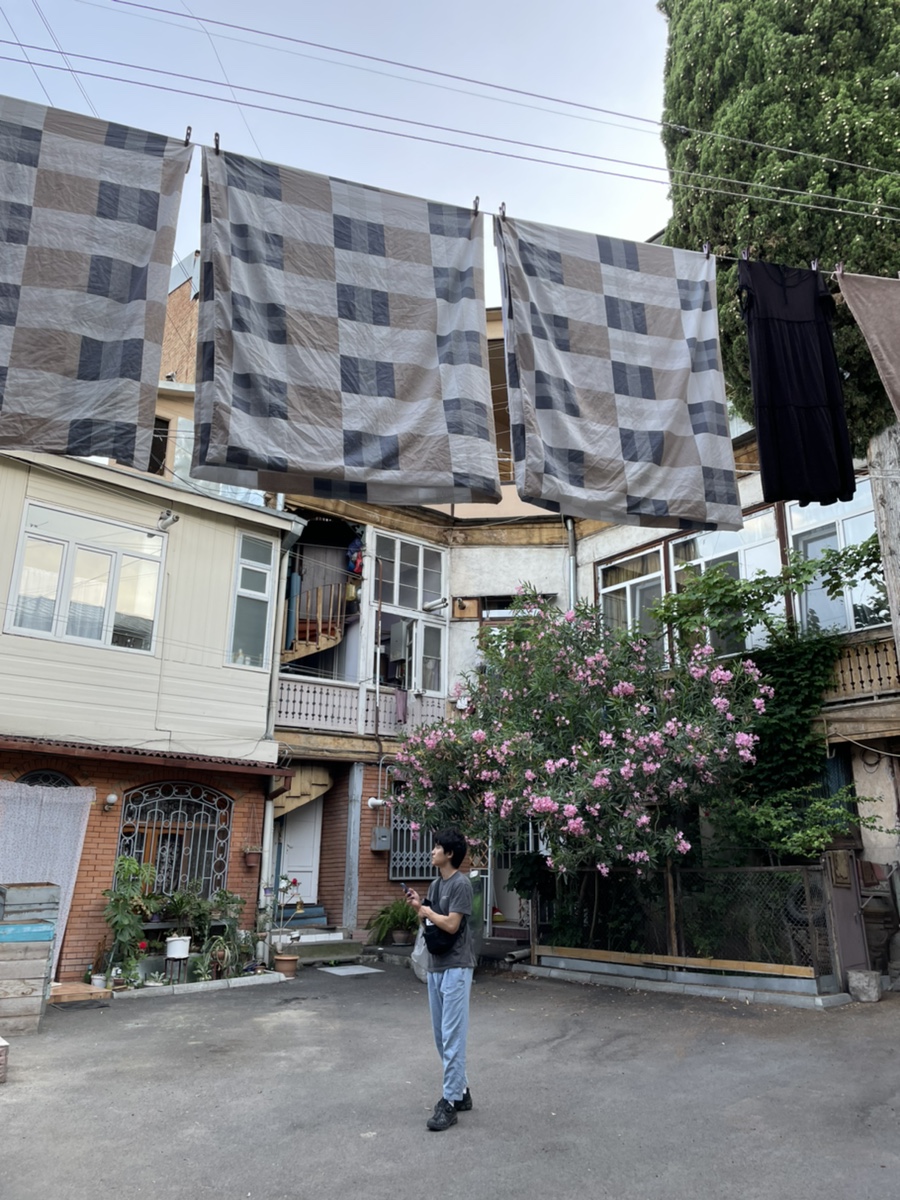 빨래를 하고 싶으면 5GEL을 내면 되는데 호스트가 빨래를 해서 이렇게 널어주신다.ㅋㅋㅋㅋ