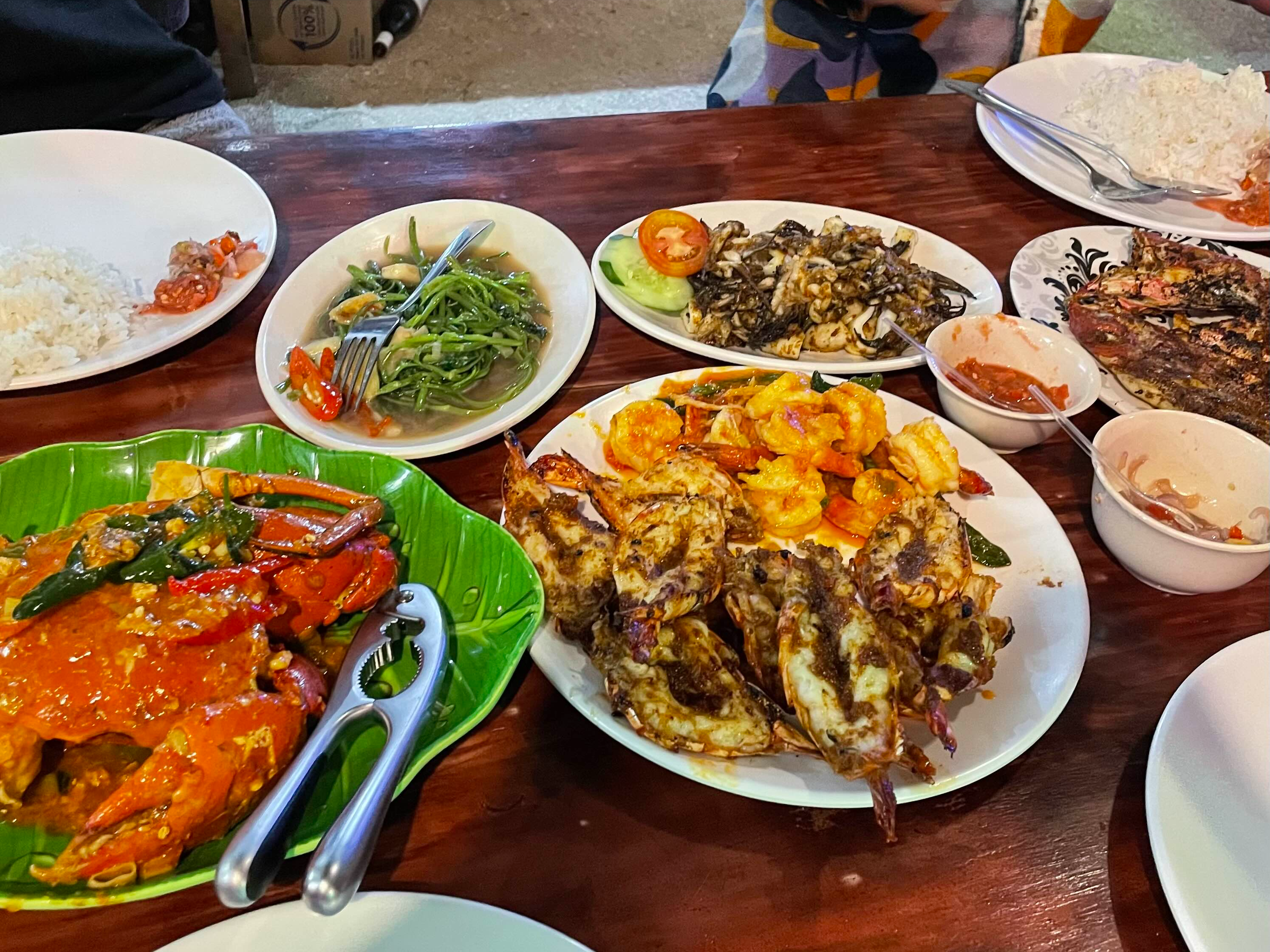 오렌지 주스도 시켰는데 양이 엄청 많았는데 달달하고 시원해서 다 먹었다.ㅋㅋㅋ 음식이 엄~~~~청 맛있다. 해산물 식당은 가게마다 소스 맛이 다 다르다고 하는데, 이 집은 한국인 입맛에 잘 맞아서 한국인들에게 인기가 많다고 한다. 다음에 또 짐바란 근처에 갈 일이 있다고 재방문하고 싶은 맛이다! 배 터지게 먹었는데 1인당 180,000루피아 정도밖에 안 나와서 더 놀랐음.