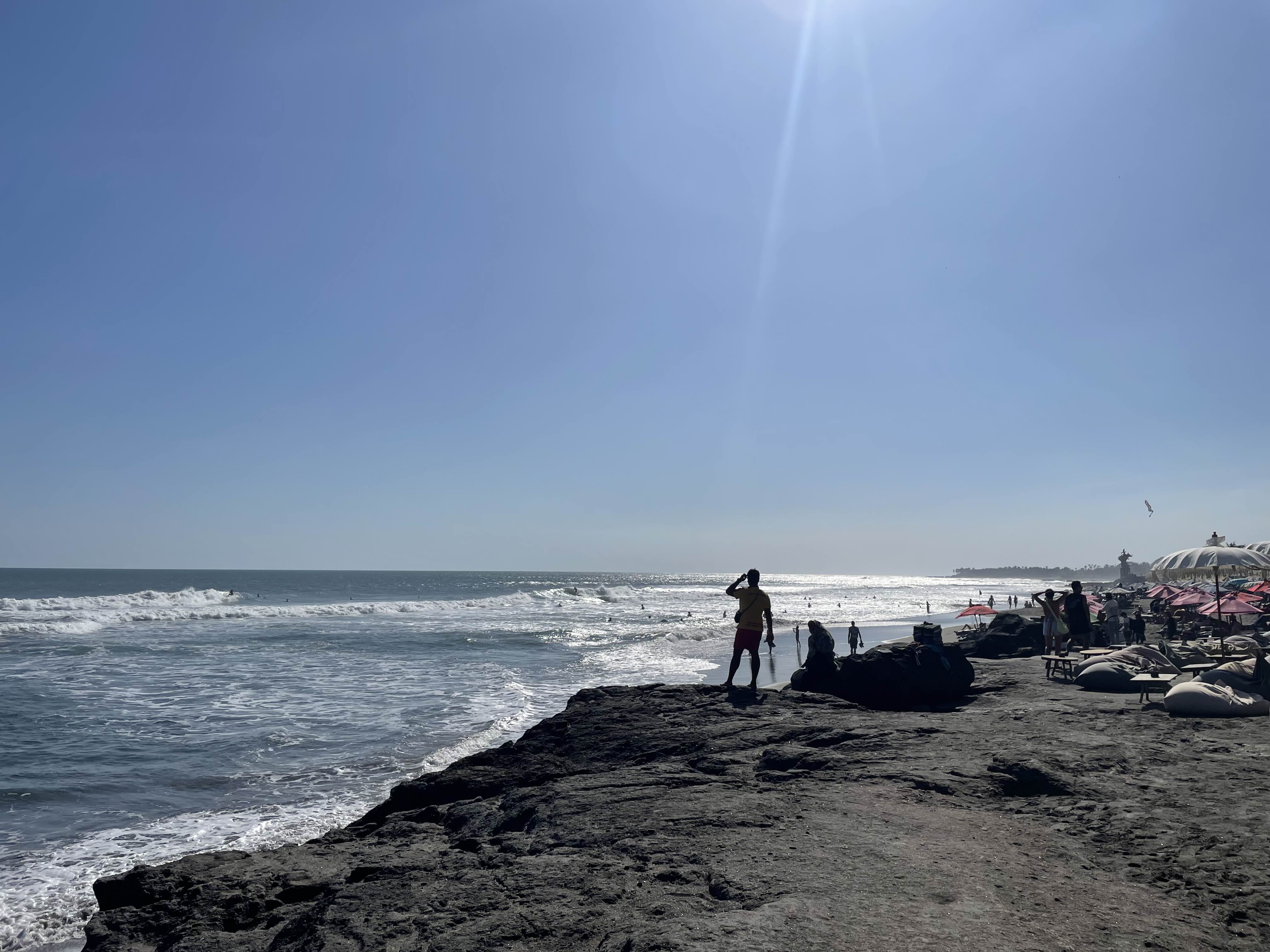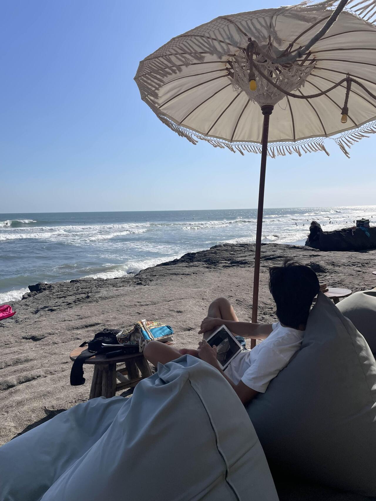 저희는 해변가에 있는 곳으로 자리를 잡았어요. 딱 선셋이 잘 보이는 자리인 것 같아서 뭐 먹고 시간 보내다가 선셋을 보려고요. 근데 이 자리 단점은 햇빛이 너무 강해요. ㅋㅋㅋㅋ 하.. 선셋 전까지 해가 떨어지는 중이라 파라솔도 소용이 없었고, 너무 뜨거웠어요. 그냥 안쪽에 있는 자리에 앉아있다가 선셋 볼 때만 해변가로 나오는 걸 추천합니다!