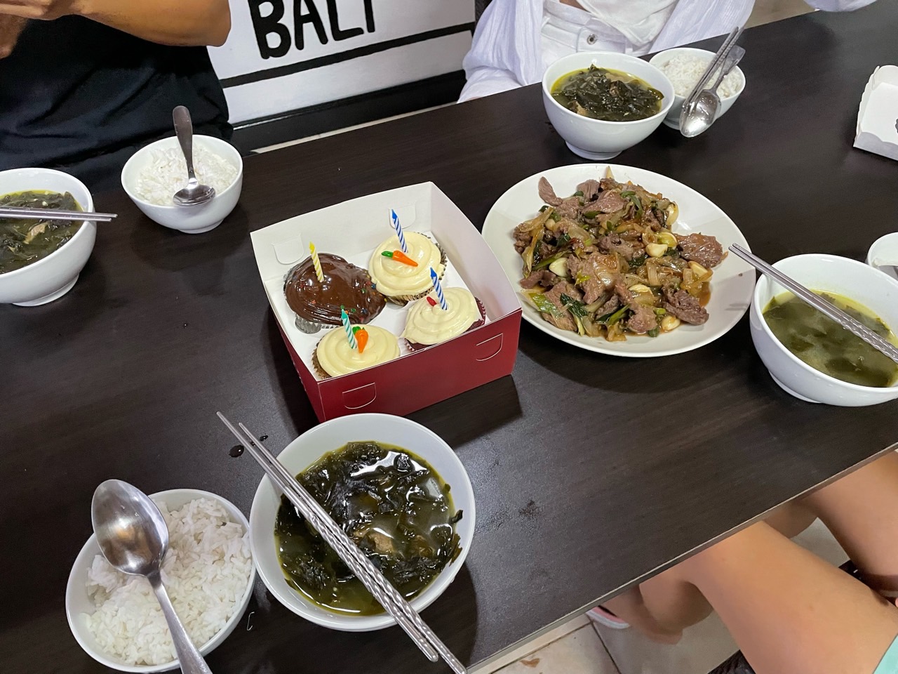 현지 음식도 먹었어요. 캠프 사장님이 며칠 전에 미역국도 미리 끓여주셨는데, 오늘은 생일이니까 맛있는 현지 음식을 먹자면서 추천해 주신 음식들! 스랑안까지 가서 포장해 온 음식 ㅎㅎㅎ 너~무 맛있었어요.
